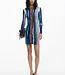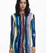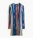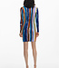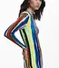 Short fitted ribbed dress, long-sleeved, round neck, with vertical stripes print in different colors.
