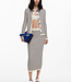 Knee-length pencil skirt in stretchy knit fabric, body-hugging, with horizontal stripe print.