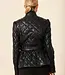 Elevate your Fall wardrobe with our black quilted faux leather jacket, featuring a sleek high collar, waist-defining tie belt, and luxurious diamond stitching. Perfect for stylish cold-weather layering. Read more..
