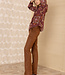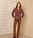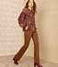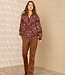 Great fall colors on this beautiful silk blouse. A nice V neck with a front yoke and a tassel tie collar. Put it with brown leather or suede. Elastic cuff sleeve. Read more..