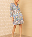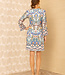 Hale Bob Long Sleeve Printed V-Neck Dress Ivory