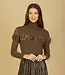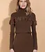 A beautifully constructed sweater with a special applique' through the chest. A romantic look that we like to pair with the knit midi skirt made by Jessie Liu. Read more..