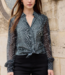 Black Snake Blouse w/Chiffon Sleeves