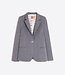 Soft stretch fabric with silver lurex threads, with asubtle shimmering finish. Straight fit with classic lapels and single front button closure. Patch pockets. Decorative buttons. Lined with a printed inner fabric. Matching trousers in the same fabric. Read more..
